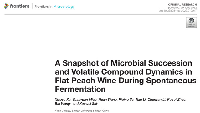 【学术前沿】蟠桃酒自然发酵过程中微生物群落及其挥发性化合物的动态研究