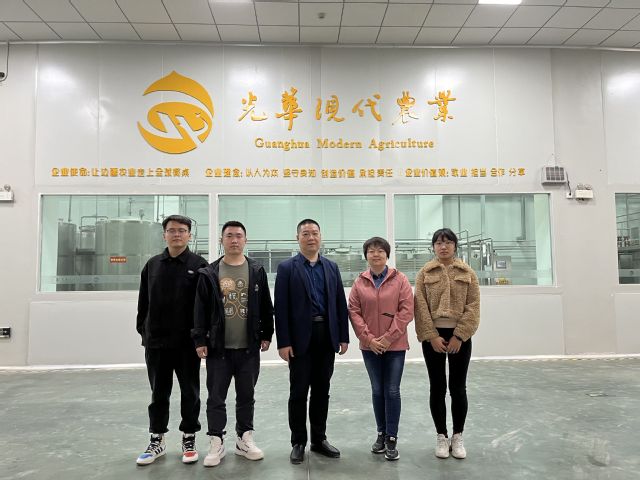 在光华现代农业有限公司,公司办公室主任党航介绍了公司发展历程、主营产品、人才需求、合作背景等。张建介绍了学院办学规模、专业建设和人才培养方面的基本情况,希望双方进一步深化校企合作,产教融合、协同育人,助推专业建设,实现人才供需精准对接。随后,张建一行人参观了企业车间和设备,详细了解公司高品质核桃蛋白、植物基乳制品、核桃酱等多元化核桃精深加工产品技术研发。双方将搭建校企合作平台,进一步推动产教融合发展,在人才培养、科研开发等多方位合作。