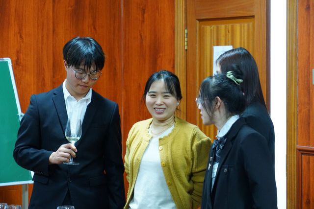 品酒会上,葡萄酒俱乐部负责同学肖滋扬、李海萍、张李晶分别从介绍葡萄酒的饮用、持杯、倒酒、品酒的基本礼仪常识,适当应用葡萄酒对身体的益处以及葡萄酒如何影响生活等方面进行了讲解。他们指出,以物载道,葡萄酒为我们带来人生启发;以酒为媒,我们能洞悉生活的奥秘。品酒带给我们的启示主要有以下五个方面:一是保持耐心。酿酒、醒酒都需要时间的沉淀。享受等待的快乐,就会得到美味的回馈。唯有保持耐心,才能有资格赢得生活中一个个最美好的瞬间;二是乐于分享。一瓶750毫升的葡萄酒是很难独自饮尽的。此时,分享就显得尤为重要。分享的不仅是杯中具象的美酒,更是这酒中的浓浓温情;三是遇事平常心。不论是未开瓶的酒,还是未发生的事,学会调整心态、静待花开。面对未知的生活,泰然处之才是快乐之源;四是敬畏自然。伽利略说:“酒是阳光,被水维系在一起。”葡萄酒是大自然馈赠给人类的琼浆。饮下它,我们自然也会生出敬畏自然的力量;五是保持年轻心态。比起葡萄酒对身体起到的抗氧化、抗衰老的保健作用,品酒给我们心理和精神上带来的改变或许更能影响你的一生。对抗无情岁月的,正是耐得住寂寞、扛得起沉浮的永远年轻的心态。用微醺,保持兴奋,让心态超越时间。