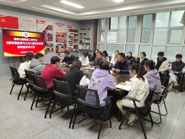 2023年11月29日,葡萄与葡萄酒工程系党总支在beat365207党建会议室召开《葡萄酒鉴赏与文化》课程建设研讨会,葡萄与葡萄酒工程系老师、研究生和本科生党员代表20余人参加会议,学院教学办公室主任秦婕老师出席会议。