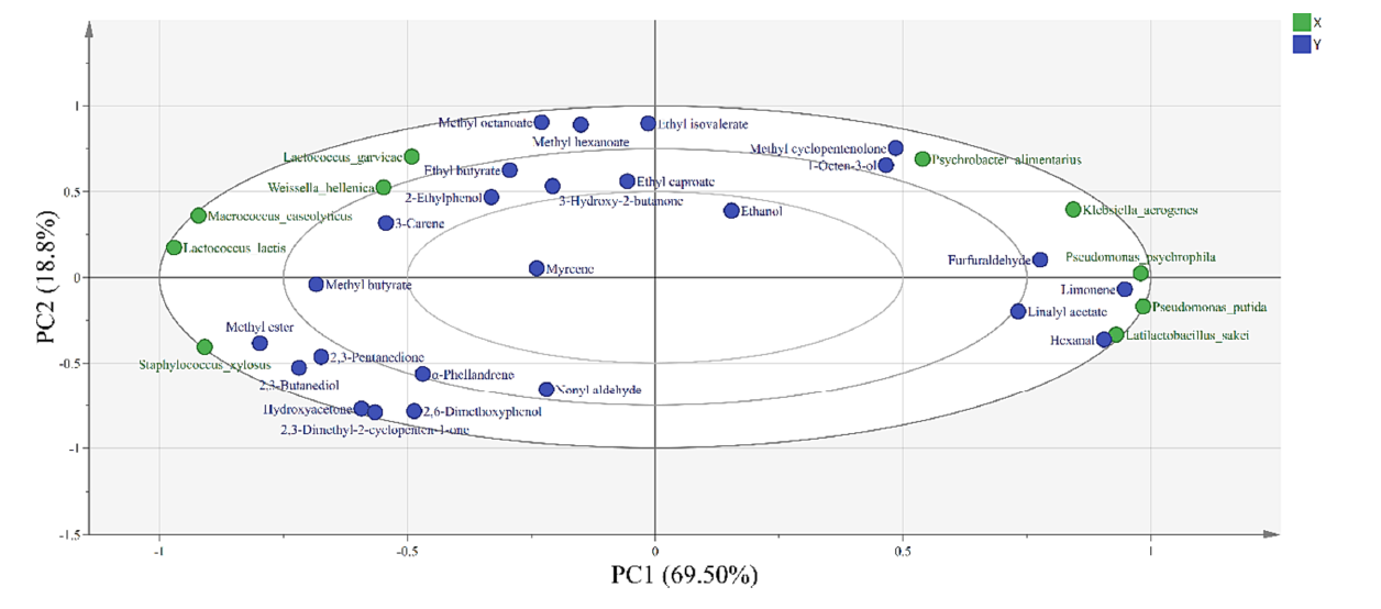 鉴定出的核心细菌为Staphylococcus xylosus、Lactococcus garvieae和Weissella hellenica,在促进2,3-丁二醇、丁酸乙酯、己酸乙酯和3-羟基-2-丁酮等主要挥发性化合物的形成中发挥了重要作用。LAB主要参与糖代谢,而Staphylococci则参与蛋白质和脂质代谢。