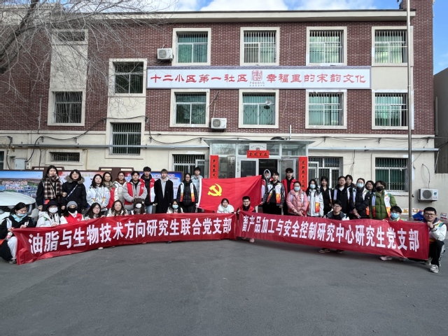 2025年3月14日下午,畜产品加工与安全控制研究中心研究生党支部联合油脂与生物技术方向研究生党支部,在12号小区第一社区开展“春意浓、党旗红、学雷锋、在行动”主题党日活动,以实际行动践行雷锋精神。