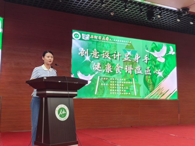 石河子大学团委副书记李梦瑶为比赛致开幕词,她讲到:“本次比赛是将学科优势向育人实效转化的一次创新性实践,希望各位选手赛出创意,用新颖的搭配展现健康饮食的无限可能;赛出科学,以严谨的态度诠释营养与美味的平衡;赛出温度,让每一道食谱都能传递对生活的热爱。值此‘体重管理年’实施阶段,希望全体师生从一餐一饭践行科学膳食理念,让健康校园与健康中国同频共振。”