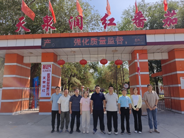 随后,团队到访天泉润红番茄制品有限公司。该公司拥有两条1000吨级套管式杀菌番茄酱生产线和一条1500吨闪蒸杀菌番茄酱生产线,年产量20000吨,并已成功开发复合苹果番茄汁、复合枸杞番茄汁及番茄调味酱等多类产品。在座谈交流中,团队与企业就生产工艺优化、新产品研发和校企深度融合等方面展开讨论,建议企业进一步加强与高校合作,借助高校科研力量推进技术升级,引进专业人才,拓宽产品线与市场渠道。团队还分享了国内外番茄加工先进经验,并在微生物防控、标准化生产等方面提出了切实建议。