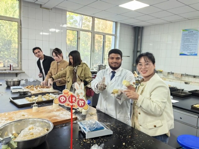 为使中华优秀传统文化更好地走向世界,学院与国际交流合作处携手,专门为近30名来自12个国家的在校留学生举办了一场别开生面的“月满人团圆,共话中秋情”文化体验活动。留学生们在老师的耐心讲解和指导下,满怀好奇地尝试制作月饼,感受中华美食的独特魅力。活动现场充满了欢声笑语,小小的月饼成为了传递友谊的使者,让来自不同国度的学子在亲手实践中感知中国、读懂中国,有效推动了中华文化的国际传播,营造了和谐包容的国际化校园氛围。
